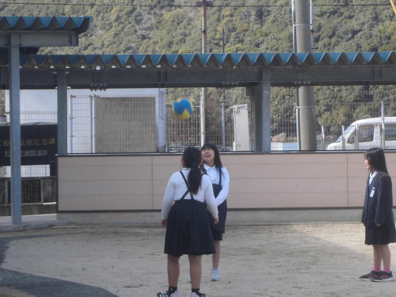 校舎の近くでは、バレーをしています。2,3年生でありながら、アンダーパスを上手にあげていました。日頃からの常連さんですね。