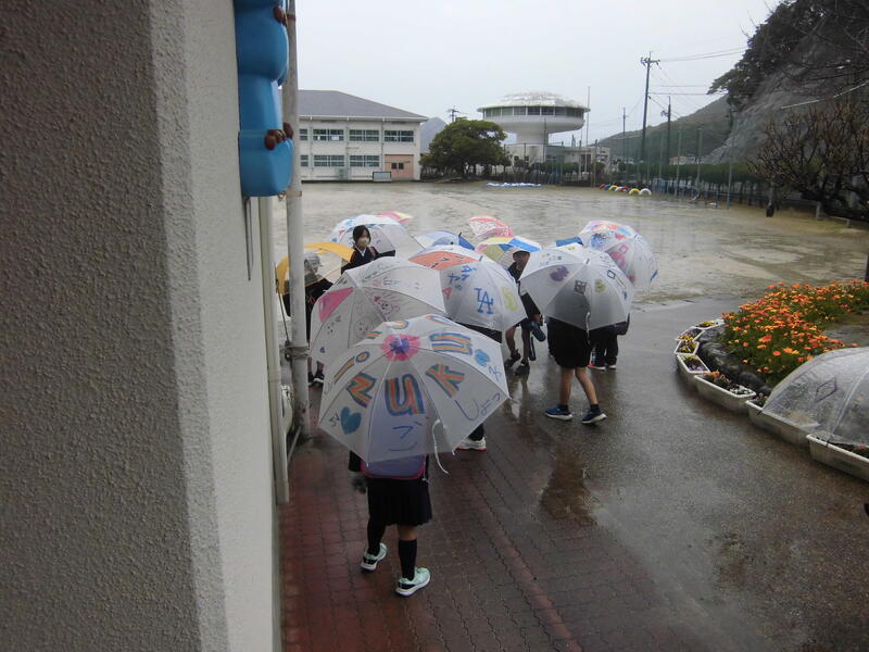 今日は待ちに待った送別遠足の日でしたが、あいにくの天候不良により、校内プログラムへと変更しました。横浦地区で楽しい時間を過ごす予定だっただけに、たいへん残念に思います。(恵みの雨だったのですが・・・。)