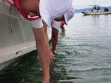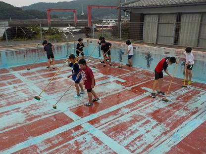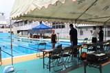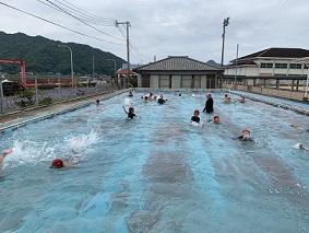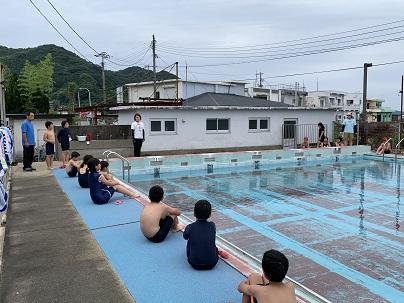 プール開きでは,模範水泳や水遊びなどを行いました。
