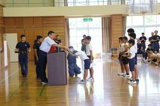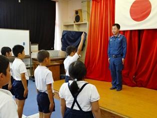 御所浦小学校では,5年生と6年生が少年消防クラブに入部します。