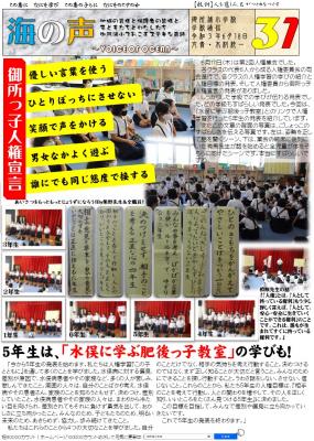 学校通信「海の声」第37号です。集団宿泊教室での5年生の学びを紹介しています。5年生の学びは1年後の4年生の学び、2年後の3年生の学びです。