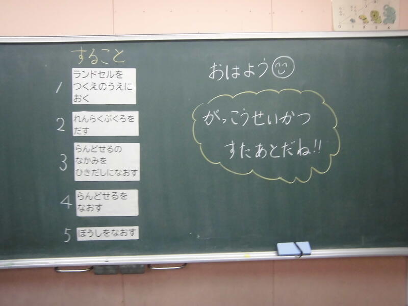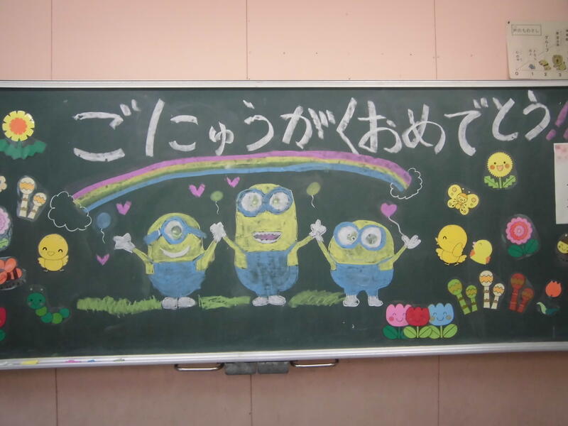 1年生の教室では、6年生が描いてくれた黒板アートが、新入生を出迎えてくれました。