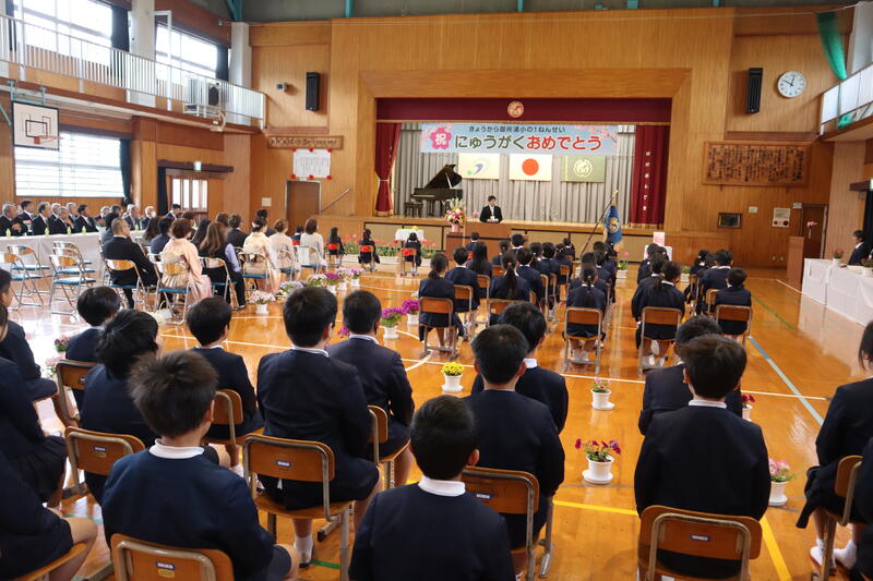 新入生氏名報告での返事が上手で、会場で見守る方々を笑顔にしてくれました。また、2年生の歓迎の言葉もバッチリで、会場を盛り上げてくれました。多数の来賓の皆様に見守られる本校児童は幸せです。