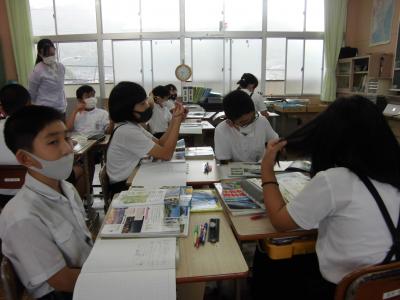 6年生。江戸時代の学問について学んでいます。パソコンを活用した調べ学習も慣れたものです。