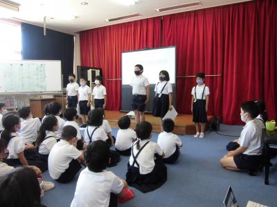 1年生は国語で学習した物語を聞いていただこうと音読発表会を開きました。