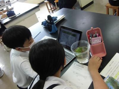 おっと、理科室の3年生は、タブレットを使うようですよ・・・。