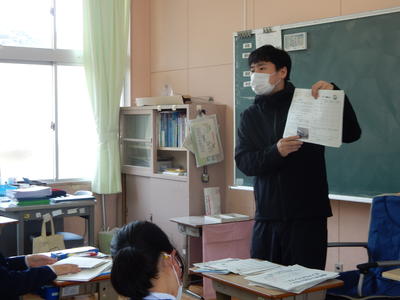 今日は、天草市教育委員会の先生、御所浦中学校の先生、東京からの学生さん(キャラバン隊)が来校されました。2時間目の5年生の国語の授業では、タブレット端末に自分の考えを残しながら、話し合いが行われました。児童は、緊張しながらも話し合いが少しずつ活発になっていく姿が見られました。緊張の中での授業、これも大切な経験です。