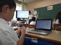 今日は、天草市教育委員会の先生、御所浦中学校の先生、東京からの学生さん(キャラバン隊)が来校されました。2時間目の5年生の国語の授業では、タブレット端末に自分の考えを残しながら、話し合いが行われました。児童は、緊張しながらも話し合いが少しずつ活発になっていく姿が見られました。緊張の中での授業、これも大切な経験です。