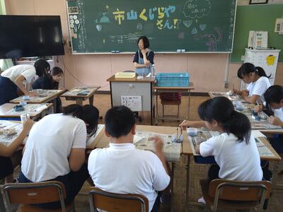 4年生も文化展の課題の文字を練習中です。今日もGTとして習字の先生に来ていただきました。