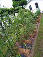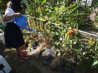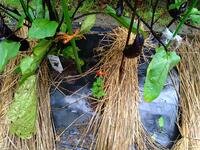 土日は風も雨もひどかったですね。雨の合間に畑の先生と地域学校協働活動推進員の方が折れたり倒れたりした夏野菜に支柱で支えをしてくださったようです。ありがとうございます。