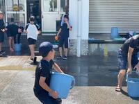 7月23日(水)、御所浦小中合同でボランティア活動を実施しました。中学校の生徒さん方がリードしながら、自分たちの地区で清掃活動に取り組みました。お菓子の袋やペットボトルなどのゴミを拾い、御所浦の環境をさらにきれいにしてくれた子どもたちです。ちなみに、写真の奥に見えるのは八代海です。遠くには九州山地も、うっすらと姿を見せていました。美しい景色と捨てられたゴミの対照が、なんとも印象的でした。