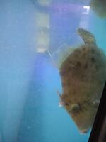 御所っ子水族館に背中に白い斑点がいっぱいあるヒラメが仲間入り。昨日も保護者の方が釣った魚の中から生かしたまま持ってきてくださいました。御所浦の海の豊かさを感じます。