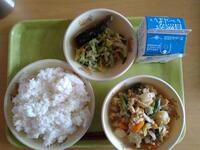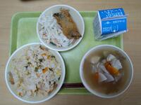 さて、今日の給食はつぼん汁、メバルの照り焼き、ひこずり。