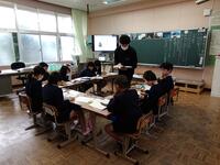 今日は、天草市教育委員会の先生、御所浦中学校の先生、東京からの学生さん(キャラバン隊)が来校されました。2時間目の5年生の国語の授業では、タブレット端末に自分の考えを残しながら、話し合いが行われました。児童は、緊張しながらも話し合いが少しずつ活発になっていく姿が見られました。緊張の中での授業、これも大切な経験です。