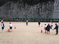 そんな中、1・2年生はボール蹴りゲームです。的のコーンに蹴って当てるゲーム。