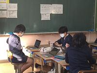 今日は、天草市教育委員会の先生、御所浦中学校の先生、東京からの学生さん(キャラバン隊)が来校されました。2時間目の5年生の国語の授業では、タブレット端末に自分の考えを残しながら、話し合いが行われました。児童は、緊張しながらも話し合いが少しずつ活発になっていく姿が見られました。緊張の中での授業、これも大切な経験です。