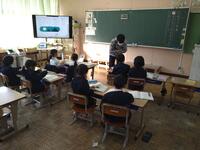 4年生は、社会科の地域学習。ちょうど授業が始まったばかりで、通潤橋、干拓などのこれまでの学習を振り合えっていました。