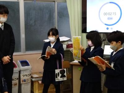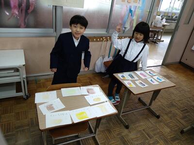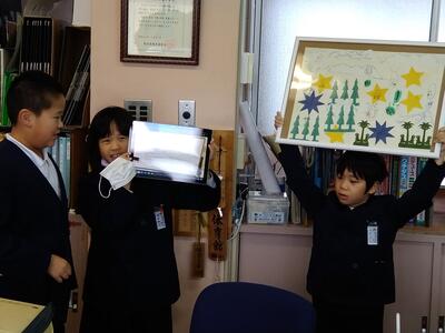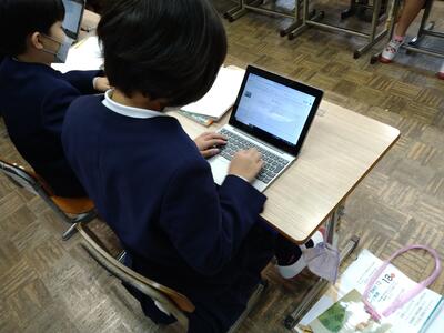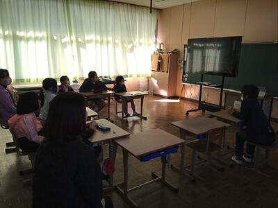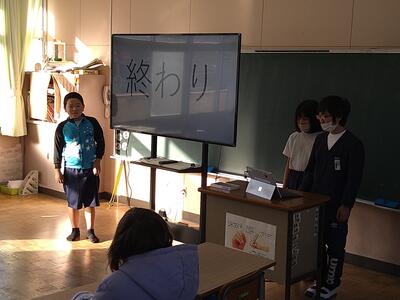 のびのび学級です。社会で調べたことをプレゼンテーションでまとめて職員室で発表してくれました。