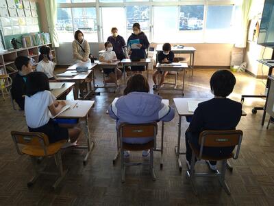 本日、東京都の明星大学の学生さん8名が、本校の教育活動の視察訪問に来校されました。皆さんは、へき地教育について自主的に学習をされている方々で、高い志を持たれています。歓迎会では、はつらつとした学生さんの姿に、子どもたちの目も輝いていました。3日間という短い期間ですが、御所浦小の子どもたちとの交流を満喫してほしいと思います。