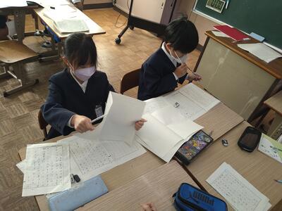 2年生は、文集「あまくさ」仕上げです。ひとりひとりがテーマをもって書いていました。