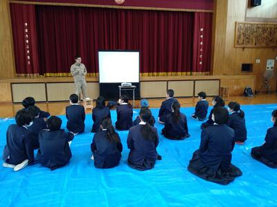 7月8日(火)本校ホールにて、御所浦小学校少年消防クラブの入部式が行われました。天草広域連合御所浦分署から署員3名にご来校いただきました。入部式では、規律訓練や講習も実施され、早速気合いが入った子どもたちです。小さな防災リーダーとして、御所浦の安全を守ってくれることでしょう!