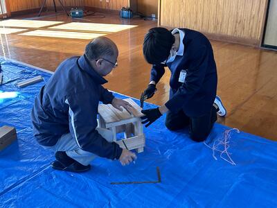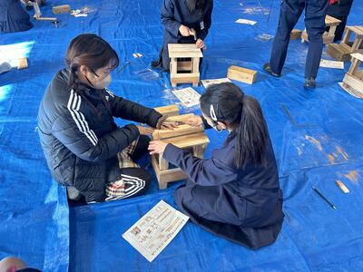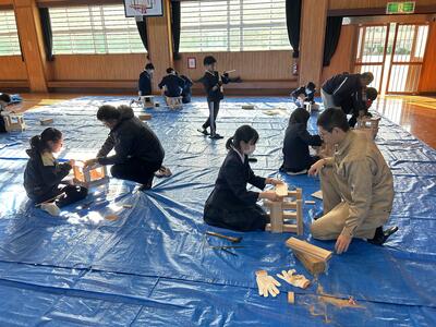 2つ目は、熊本県天草広域本部農林水産部林務課のご協力のもと、5,6年生を対象に木工教室が開催されました。