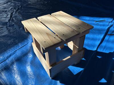 1枚の板から長さをしっかりと測りながら、のこぎりで切り、組み立てていきます。