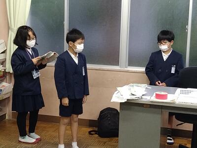 本日は、不審者対応避難訓練でした。駐在所の川越様ご指導のもと、不審人物への対応、児童の避難、職員訓練を実施しました。真剣な眼差しで話を聞く子どもたちの姿がよかったです。児童も職員も危機管理の意識を高めることができました。地域も本校も支えてくださる川越様に感謝しかありません。