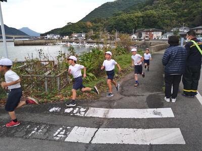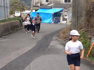 4年生は、いつも一緒に走る3年生がいない中でしたが、一生懸命走りました。