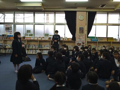 人権集会を行いました。人権主任の先生方からは、「自分のよいところに目を向けてみよう」というお話がありました。その後、縦割り班に分かれ、子どもたちは、友達のよいところをハート型の台紙に書き込んでいたものを手に紹介しました。誰のことが書かれているのか分からない班の友達は、発表を聞きながらドキドキしています。名前が明らかになると、紹介された子は嬉しそうに言葉を交わし、温かな雰囲気が広がりました。子どもたちが体育館を後にしたあとも、会場にはいつもより柔らかく、温かい空気が残っていました。
