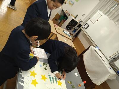 6年生は、イルミネーション点灯式までの自分たちの活動をふり返ります。