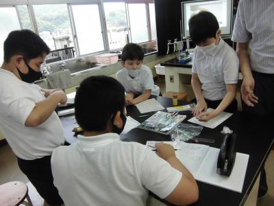 朝から子どもたちに囲まれる「ごしょっこ水族館」。今日も「わあ、きれいになってる!」と声をあげながら、1・2年生の子どもたちが水槽をのぞき込んでいました。昨日の放課後、保護者の方が掃除と海水の入れ替えをしてくださったおかげです。水槽の中では、鯛の稚魚がすくすくと成長しています。