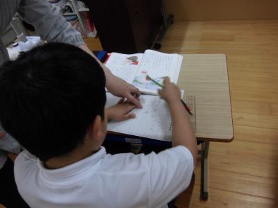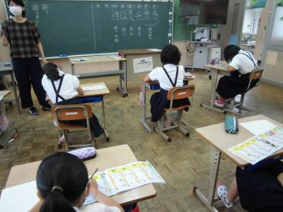 1年生、算数、「バスに乗っている人は何人かな?」・・・。