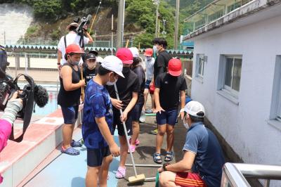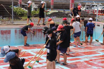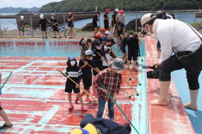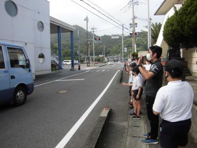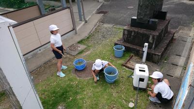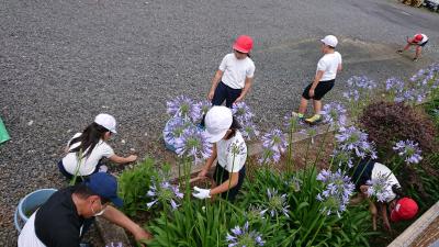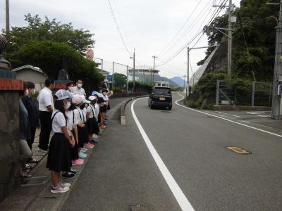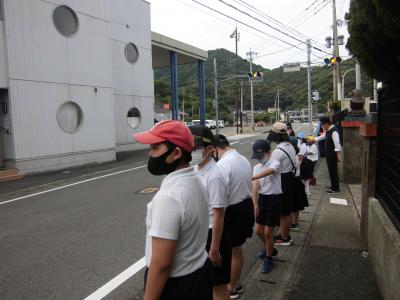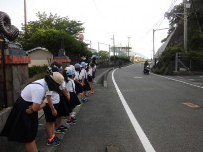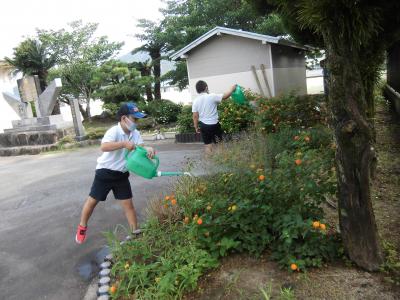 7月23日(水)、御所浦小中合同でボランティア活動を実施しました。中学校の生徒さん方がリードしながら、自分たちの地区で清掃活動に取り組みました。お菓子の袋やペットボトルなどのゴミを拾い、御所浦の環境をさらにきれいにしてくれた子どもたちです。ちなみに、写真の奥に見えるのは八代海です。遠くには九州山地も、うっすらと姿を見せていました。美しい景色と捨てられたゴミの対照が、なんとも印象的でした。