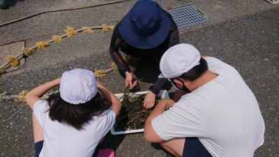 4月19日(土)に植えた餅米を使い、もちつきを行いました。お世話になった山崎様に見守られながら、5年生は感謝の気持ちを込めて楽しくもちつきを体験しました。つきたてのお餅に砂糖醤油をつけて、子どもたちはおいしそうに頬張っていました。こうした貴重な体験ができることは、子どもたちにとって大きな幸せです。