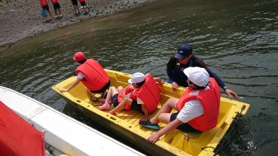 4年生は、勇志国際高校近くの入り江で伝馬船の体験を行いました。地域の方々のご協力をいただきながら、全員が艪をこいで舟を進める貴重な経験をしました。風が吹く中での操縦は容易ではなく、悪戦苦闘しながらも和船ならではの操船を体感することができました。 ※伝馬船(てんません)とは、日本で使われた木造の小型和船で、本船と岸の間で荷物や人を運ぶために用いられた船です。