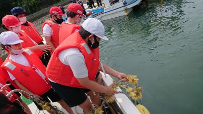 これまでヒラメや車エビの稚魚放流を経験させていただきましたが、今日はマダイの放流を体験しました。稚魚のつかみ方にも慣れてきたのか、これまで以上にスムーズに放流できていたと思います。