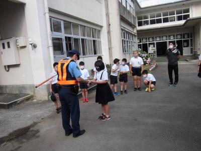 本日は、不審者対応避難訓練でした。駐在所の川越様ご指導のもと、不審人物への対応、児童の避難、職員訓練を実施しました。真剣な眼差しで話を聞く子どもたちの姿がよかったです。児童も職員も危機管理の意識を高めることができました。地域も本校も支えてくださる川越様に感謝しかありません。