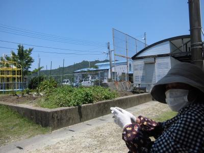 7月23日(水)、御所浦小中合同でボランティア活動を実施しました。中学校の生徒さん方がリードしながら、自分たちの地区で清掃活動に取り組みました。お菓子の袋やペットボトルなどのゴミを拾い、御所浦の環境をさらにきれいにしてくれた子どもたちです。ちなみに、写真の奥に見えるのは八代海です。遠くには九州山地も、うっすらと姿を見せていました。美しい景色と捨てられたゴミの対照が、なんとも印象的でした。