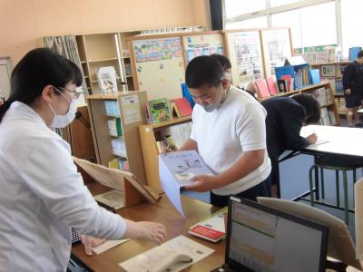 今日は、天草市教育委員会の先生、御所浦中学校の先生、東京からの学生さん(キャラバン隊)が来校されました。2時間目の5年生の国語の授業では、タブレット端末に自分の考えを残しながら、話し合いが行われました。児童は、緊張しながらも話し合いが少しずつ活発になっていく姿が見られました。緊張の中での授業、これも大切な経験です。