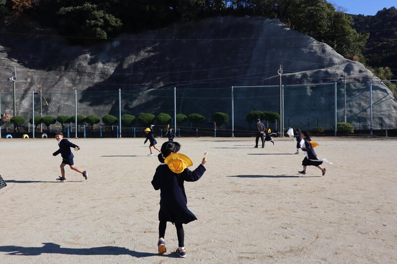 今日の昼休み、大谷選手からいただいたグローブをはめて、担任の先生を相手にキャッチボールをする児童の姿を発見!大谷選手の二刀流復帰の次の日に、こんな光景を御所浦小学校運動場で見ることができるとは、何とも幸せです。ボールがグローブにおさまったときの「パシッ」という音が、心地よく感じられた昼休みでした。