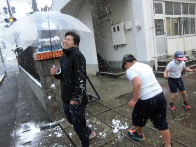朝の雪合戦で、坂瀬先生をねらって渾身の力を込めて投じた6年生の雪玉・・・。