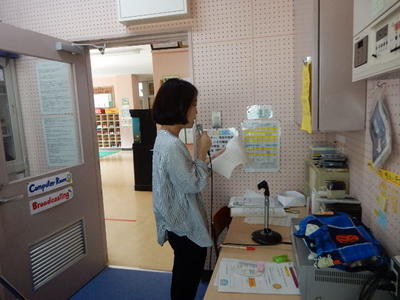 机、いす、とって、棚、蛇口・・・、各教室の消毒を拭き上げました。
