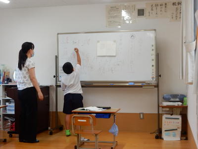 子どもたちは音により話を聞き、板書を見て視覚的に確認できます。