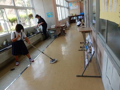 放課後は、各教室の全ての消毒とローリングモップの消毒を行いました。