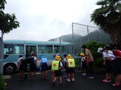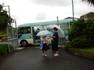梅雨の朝は、スクールボートの出迎えからスタートです・・・。