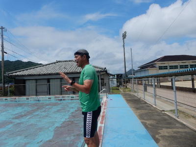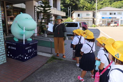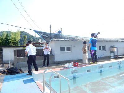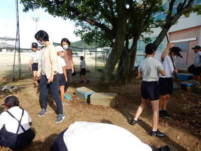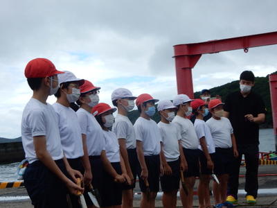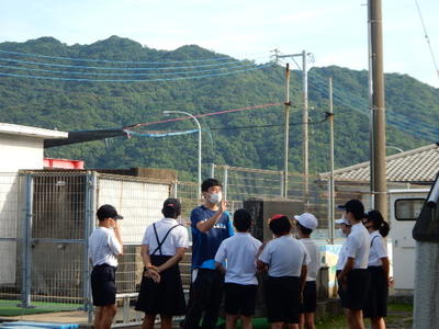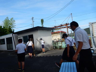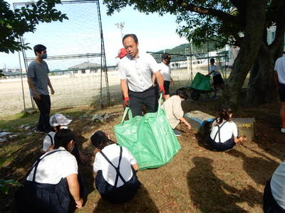 7月23日(水)、御所浦小中合同でボランティア活動を実施しました。中学校の生徒さん方がリードしながら、自分たちの地区で清掃活動に取り組みました。お菓子の袋やペットボトルなどのゴミを拾い、御所浦の環境をさらにきれいにしてくれた子どもたちです。ちなみに、写真の奥に見えるのは八代海です。遠くには九州山地も、うっすらと姿を見せていました。美しい景色と捨てられたゴミの対照が、なんとも印象的でした。