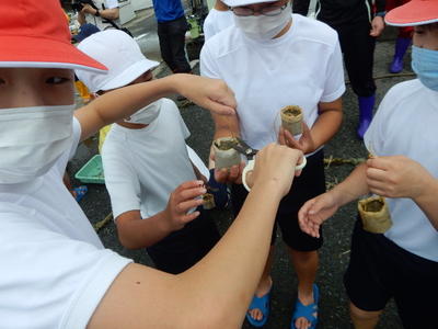 4月19日(土)に植えた餅米を使い、もちつきを行いました。お世話になった山崎様に見守られながら、5年生は感謝の気持ちを込めて楽しくもちつきを体験しました。つきたてのお餅に砂糖醤油をつけて、子どもたちはおいしそうに頬張っていました。こうした貴重な体験ができることは、子どもたちにとって大きな幸せです。