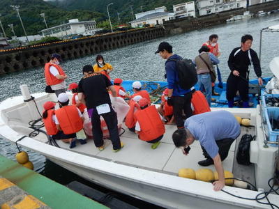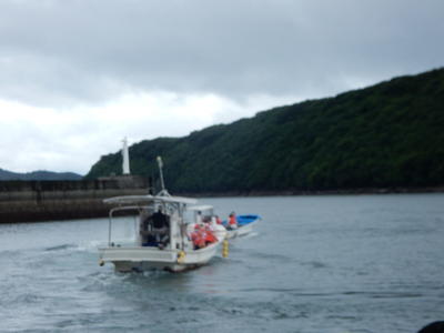 準備整ったら、船4台で、沖へと出かけます・・・。