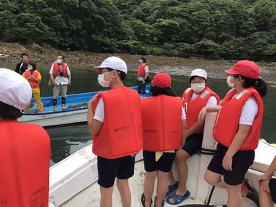 4年生は、勇志国際高校近くの入り江で伝馬船の体験を行いました。地域の方々のご協力をいただきながら、全員が艪をこいで舟を進める貴重な経験をしました。風が吹く中での操縦は容易ではなく、悪戦苦闘しながらも和船ならではの操船を体感することができました。 ※伝馬船(てんません)とは、日本で使われた木造の小型和船で、本船と岸の間で荷物や人を運ぶために用いられた船です。